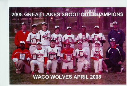 The WaCo Wolves 9U team played in the All-American Baseball Association (AABA) league in 2004. The league consisted of the Bloomfield Sting, Motor City Hit Dogs, and the WaCo Wolves in the 9-under bracket. We also played crossover games against the Detroit Eagles, Sterling Heights Cardinals and the Sterling Heights Yankees in the 10-under bracket. We finished in 1st place with an undefeated record in the league.